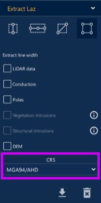 Choose the CRS you require from the list. The default is MGA94/AHD |